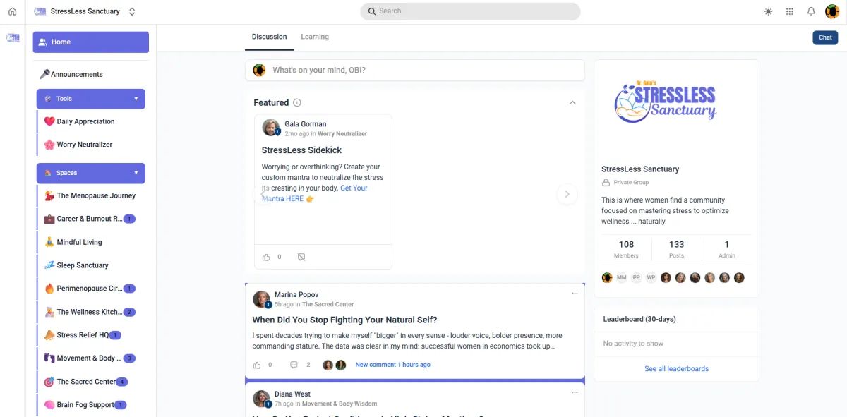Everything is in ONE place — Community, Apps, and Learning all accessible from one calm, intuitive portal.